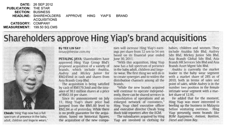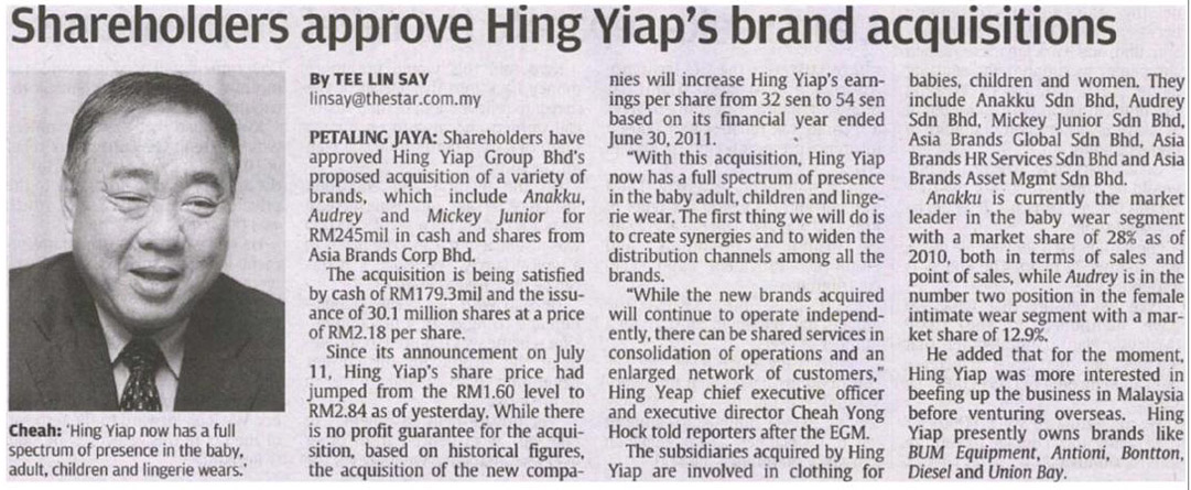 Shareholders Approve Hing Yiap's Brand Acquisitions